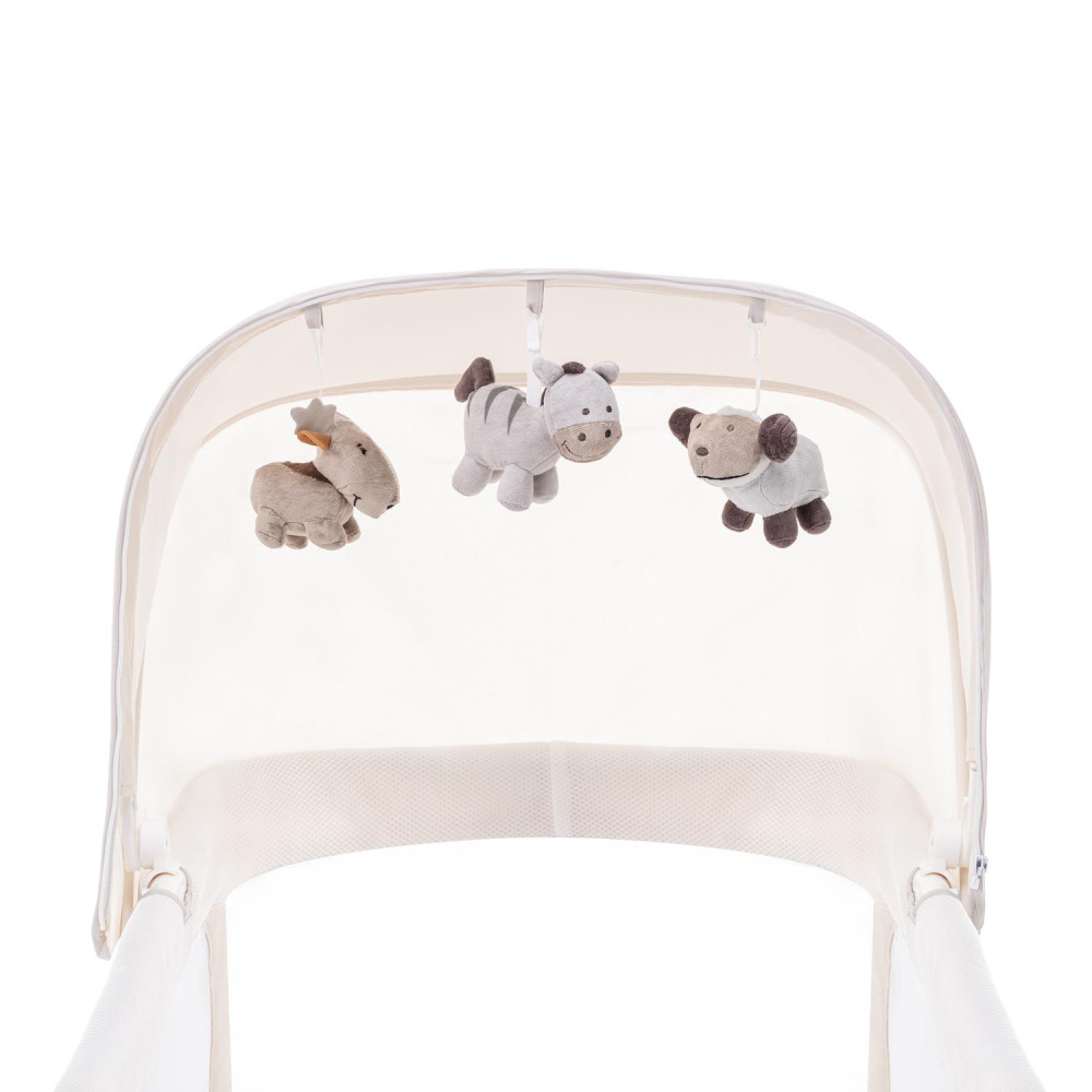 Спальное место очень просторное, поэтому использование колыбели как манежа для игр возможно уже с самого рождения. Наличие в комплекте противомоскитной сетки позволит пользоваться колыбелью, ка -