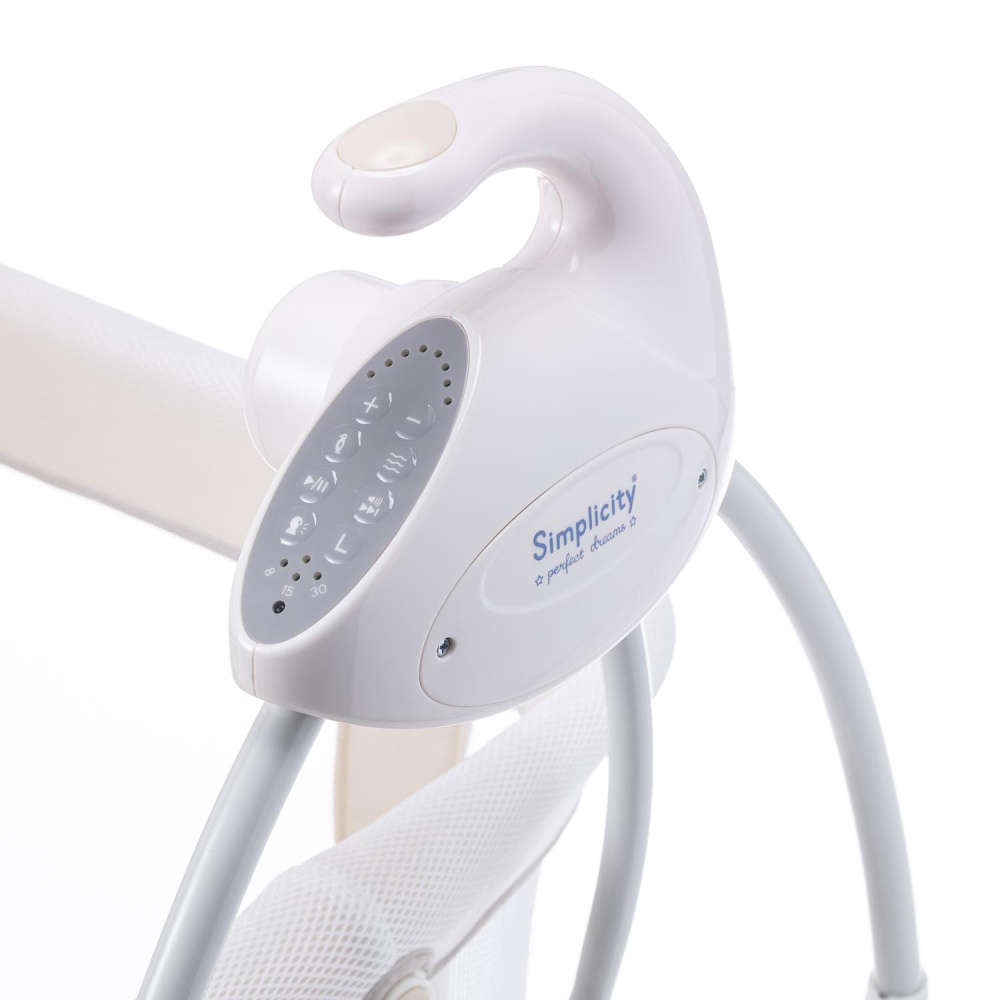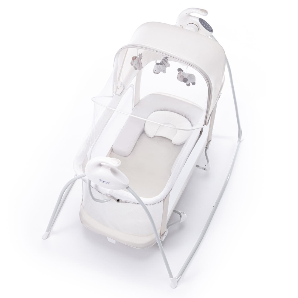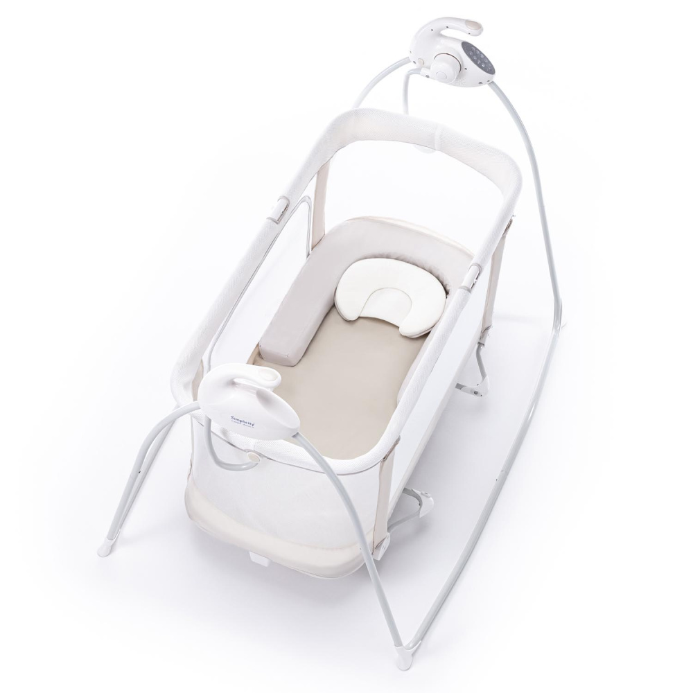 Особенностью данной модели является многофункциональная панель управления, которая обеспечивает автоматическое укачивание с возможностью изменения скорости качания. В ней есть и дополнительные полезные опции как проигрывание мелодии пения птиц и шума воды, а также возможность воспроизведения собственных мелодий с USB-накопителя или сотового телефона. Очень удобен и датчик, реагирующий на плач ребенка, который автоматически запускает укачивание и воспроизведение музыки. Управление колыбелью осуществляется вручную, пультом дистанционного управления, а также возможно и голосовое управление колыбелью.