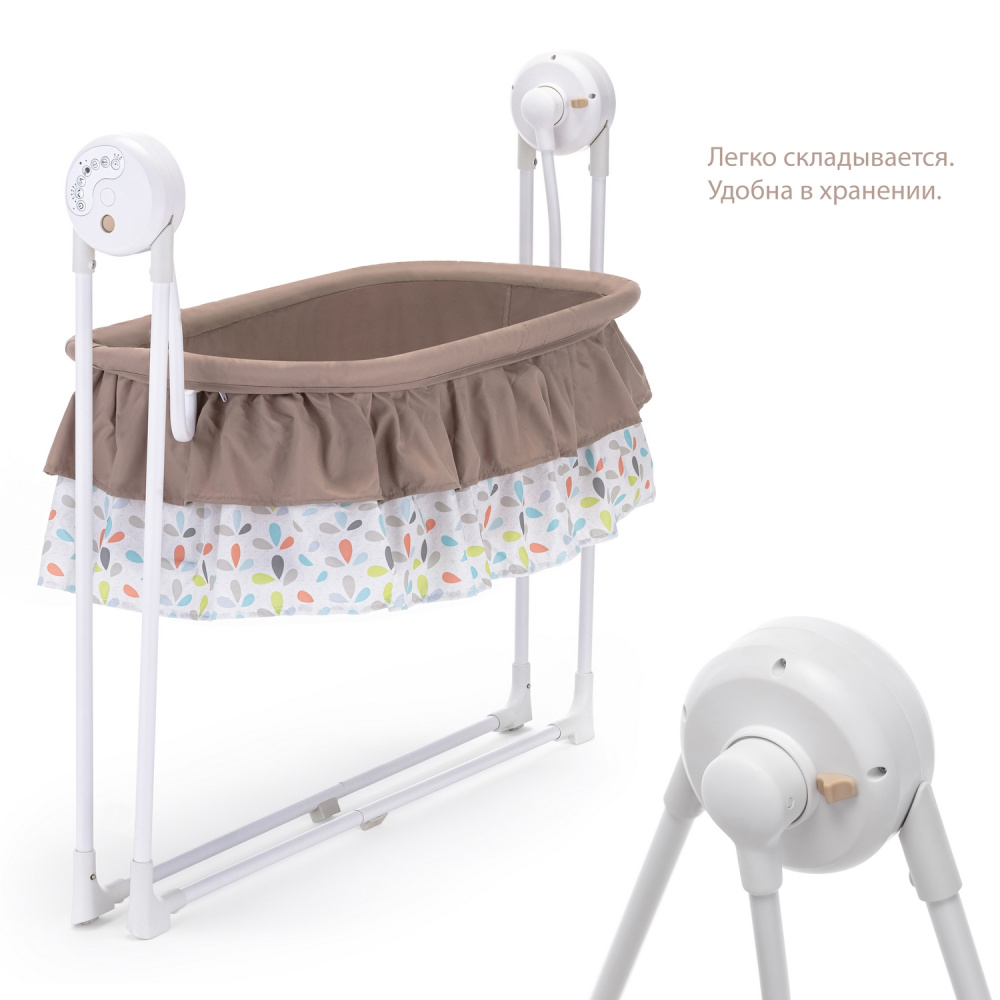 Широкий выбор скоростей укачивания позволяет использовать колыбель и как качели для грудничков. Таймер устанавливается на 8, 15 или 30 минут, после чего качание самостоятельно отключается. При желании ук -