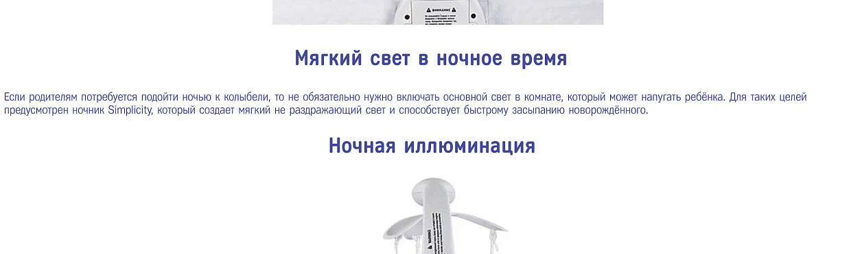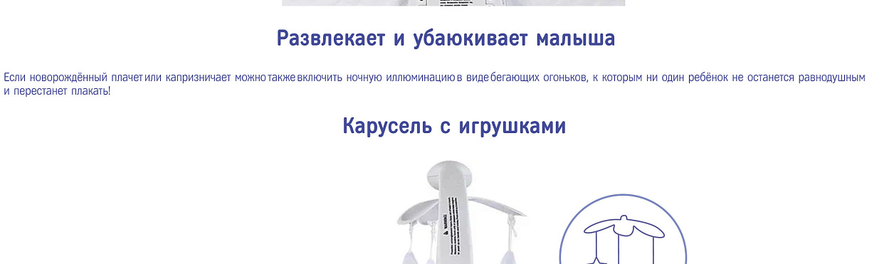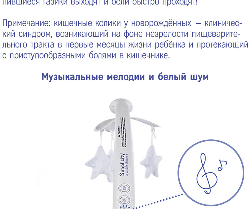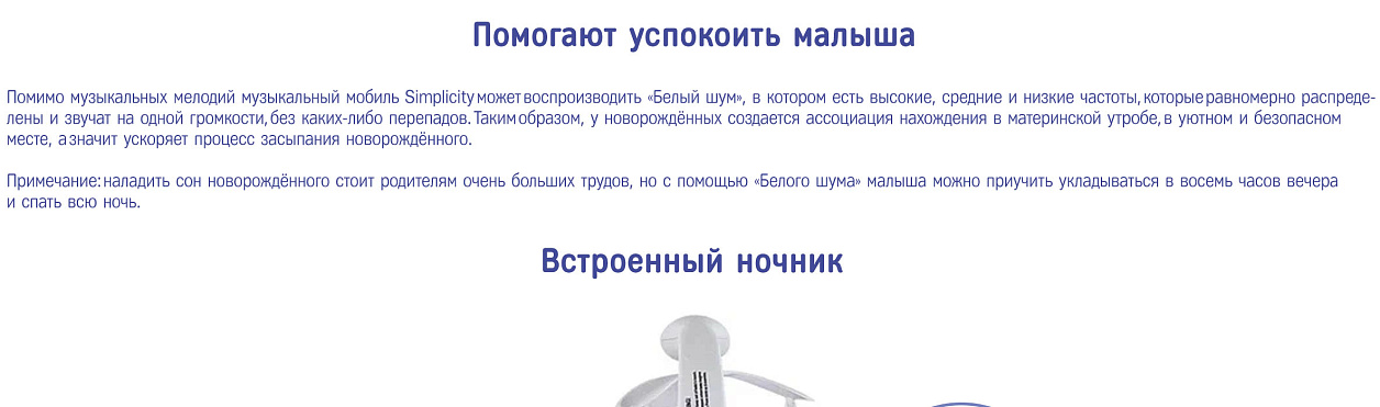 - Функции: встроенная музыка, регулировка громкости музыки, встроенный ночник